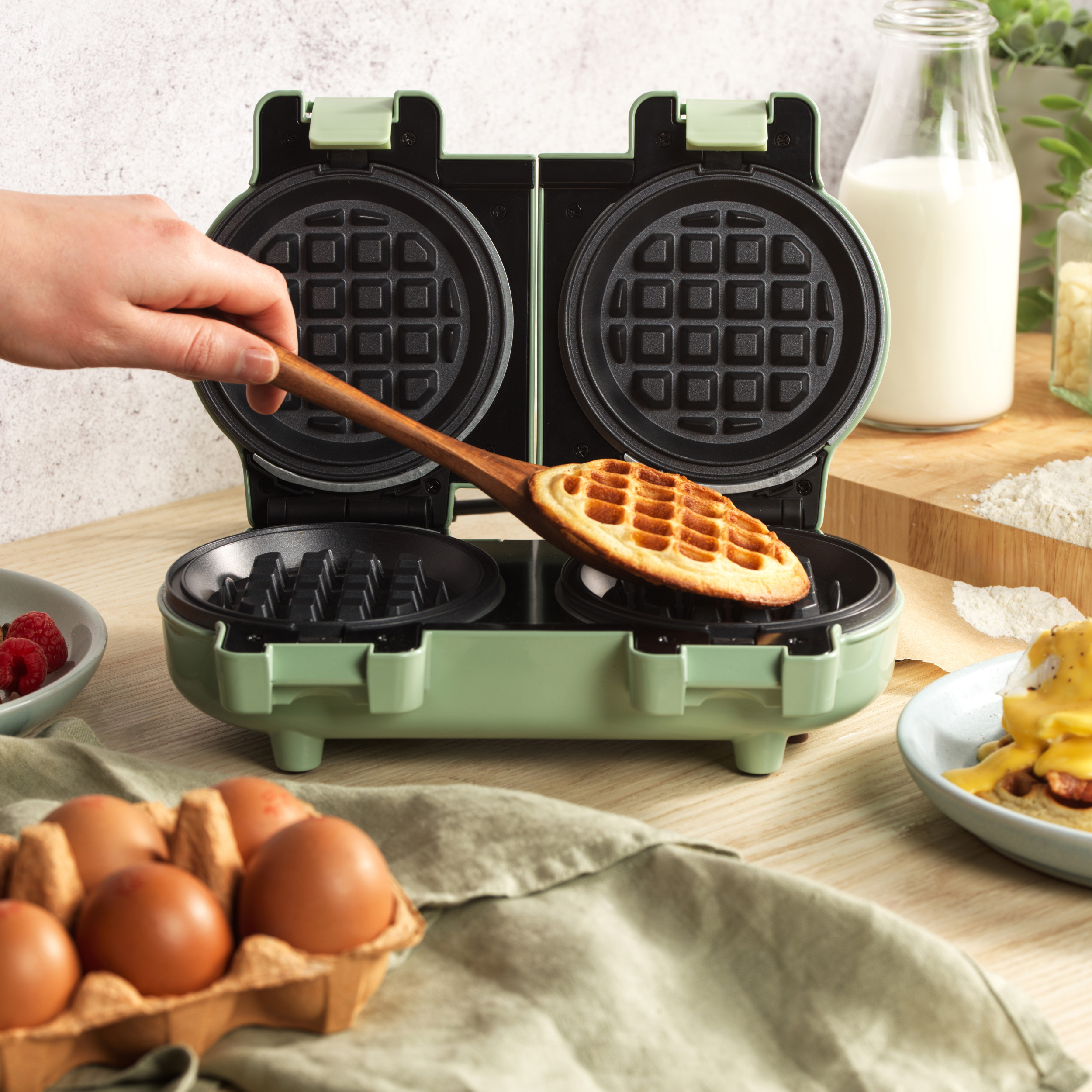 Giles & Posner EK5922GSGR Double Mini Waffle Maker – Non-Stick Waffle Iron Machine, Sweet/Savoury Snacks Desserts, Compact, 11.5cm Removable Plates, American Style Waffles, Pastel Green, 1100 W